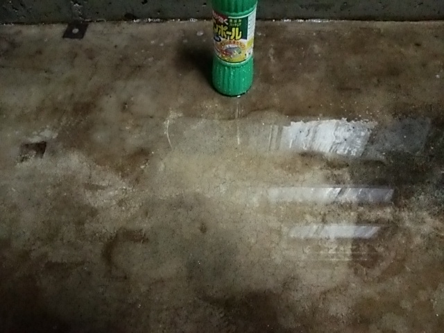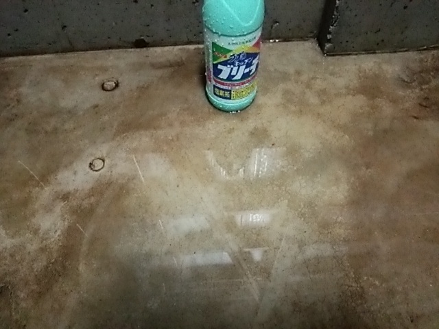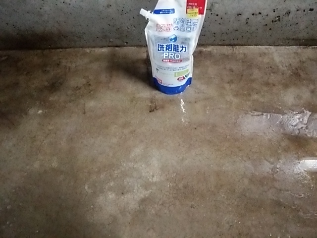 汚れてしまったコンクリートの床清掃中です。