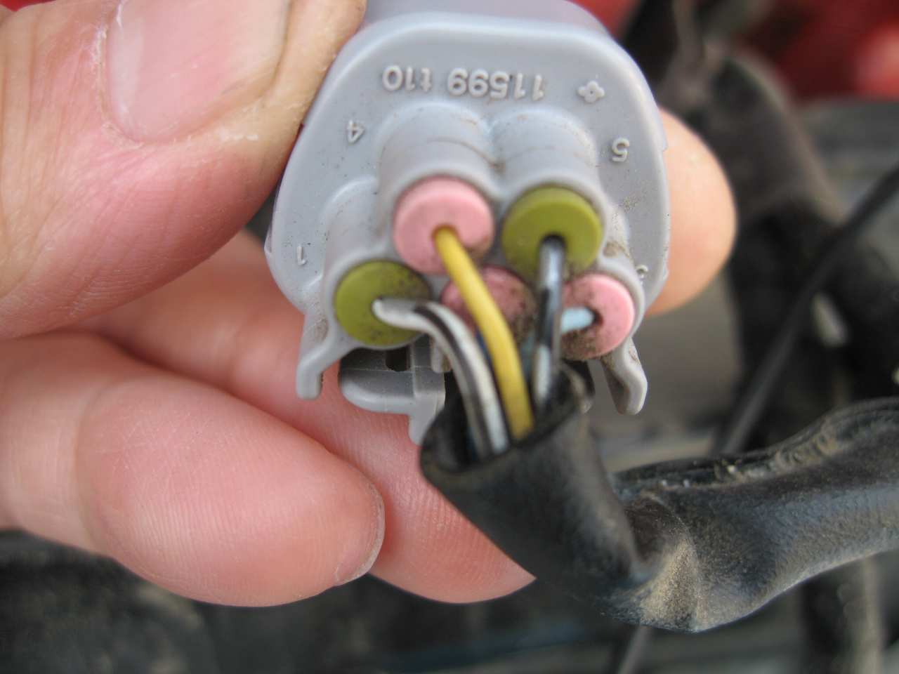 ↓ 車両側の6Pコネクターに線が3本あります。