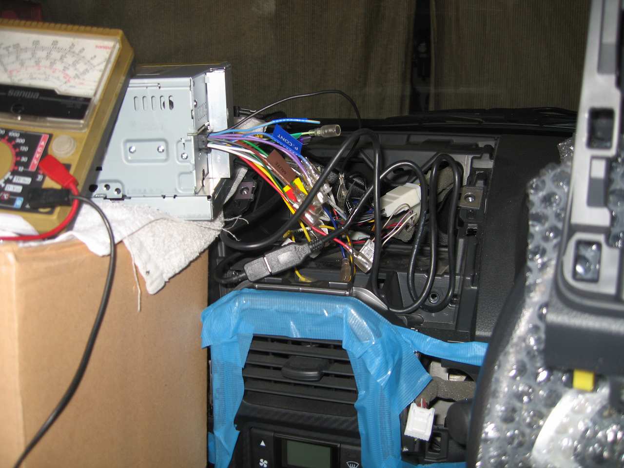 ①助手席BOX上のハザードボタンの付いたパネルを引っこ抜きます。