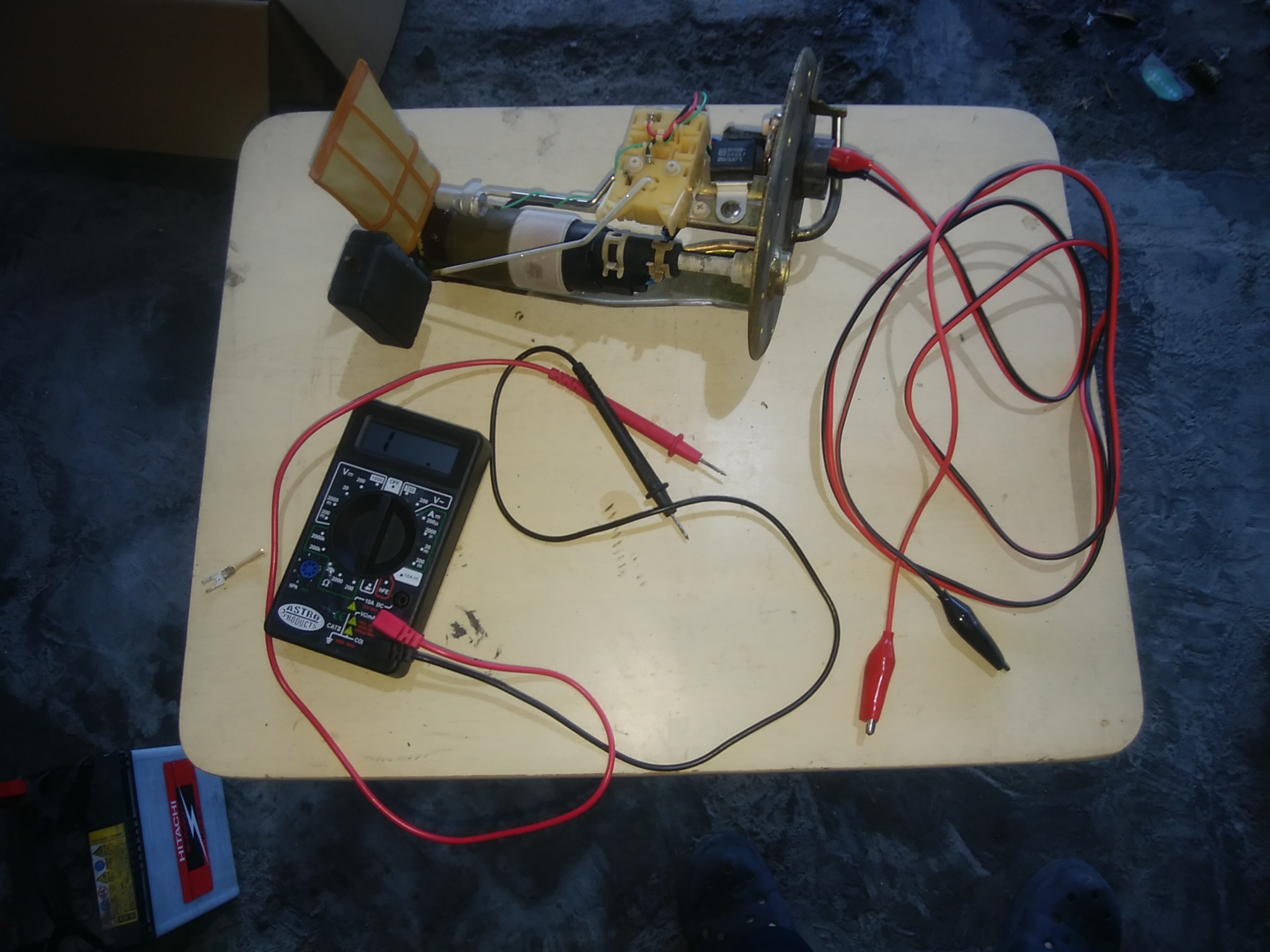 ④燃料ポンプのコネクター外して、テスターで計ってみる。